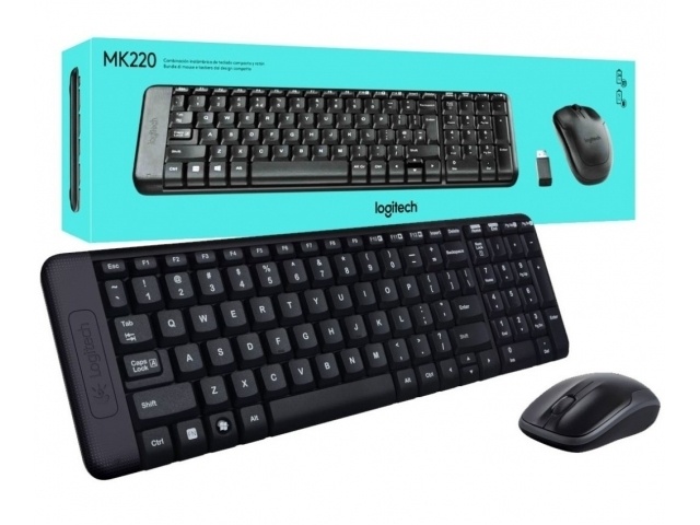 Combo teclado y mouse óptico inalámbrico Logitech.