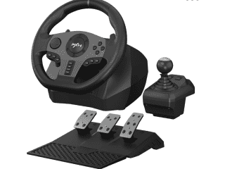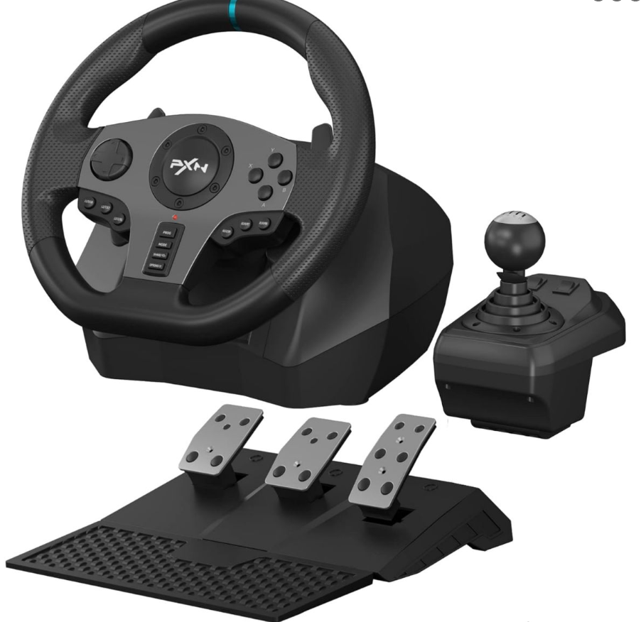 El PXN V9 es un volante multi‑plataforma de nivel inicial que destaca por incluir volante desmontable, pedalera con embrague y una palanca de cambios H‑pattern de 6 velocidades