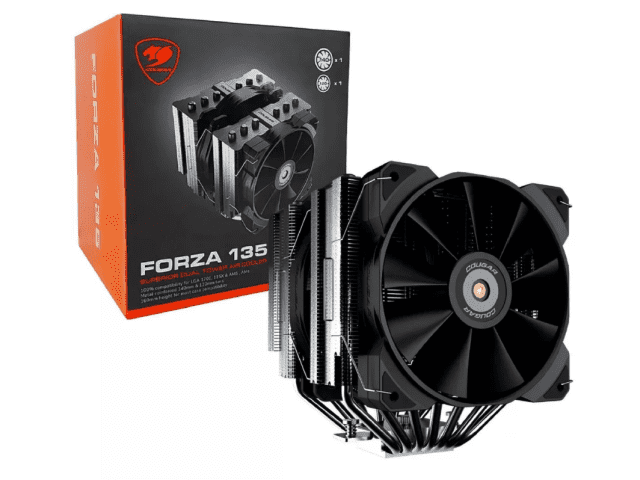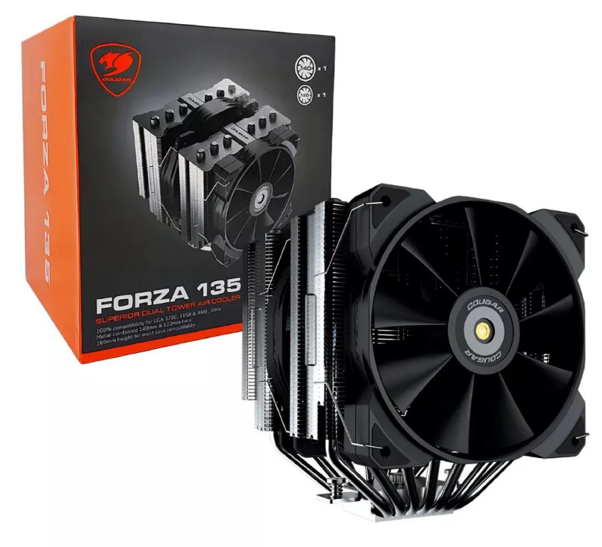 Para los entusiastas y los jugadores que buscan llevar sus sistemas al límite, el Forza 135 ofrece un equilibrio excepcional de funcionamiento ultrasilencioso y refrigeración potente como enfriador de aire de doble torre para CPU de alto nivel. Su cubierta frontal tiene un diseño exclusivo y está equipada con los ventiladores de alto rendimiento de COUGAR, el MHP140-A y el MHP120.