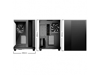 Diseño espacioso para radiadores de hasta 360 mm, una placa base ATX, 2 discos duros y SSD al mismo tiempo.