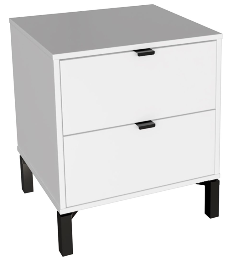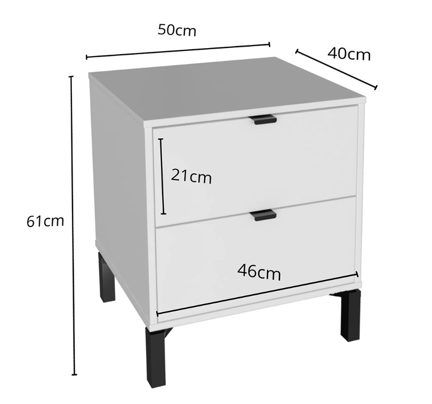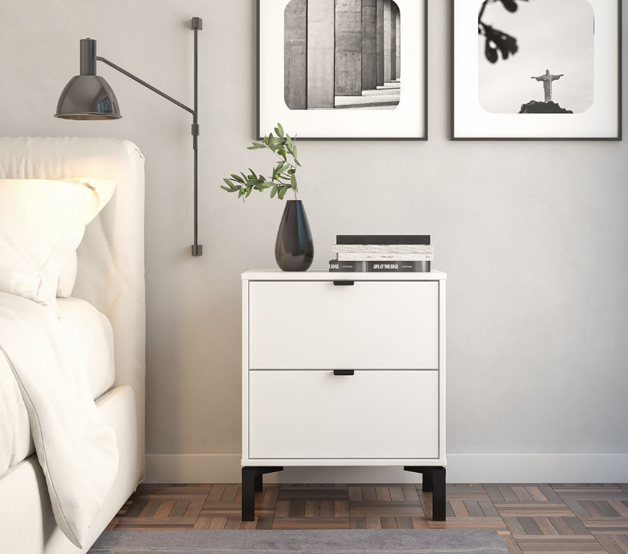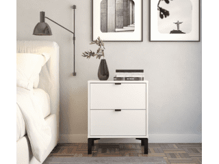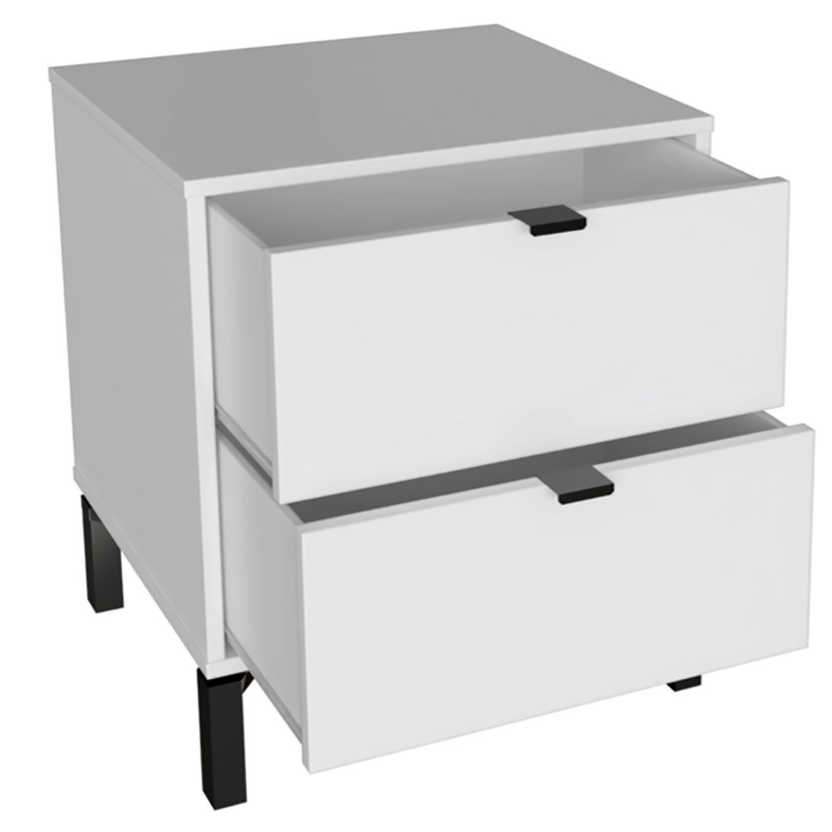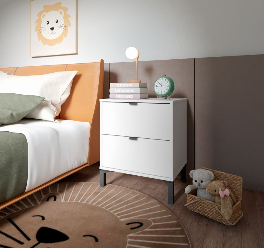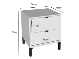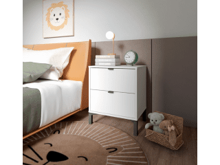 Esta mesa de luz tiene todo lo que necesitás: diseño moderno, altura ideal para camas más altas y cajones amplios para guardar todo eso que querés bien a mano y bien guardado a la vez. Fabricada en MDP con contrachapado melamínico, rieles telescópicos para un deslizamiento suave, patas en madera y tiradores metálicos, ambos detalles en color negro, aportan carácter y estilo con un toque de sofisticación. Una pieza funcional, simple y con mucha onda que eleva el estilo de tu dormitorio.