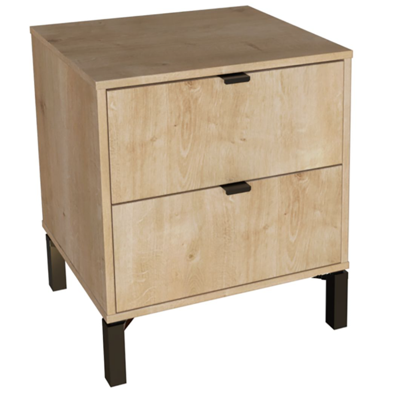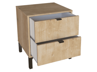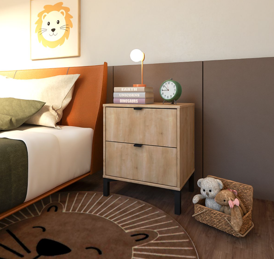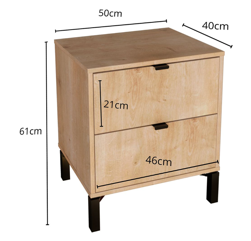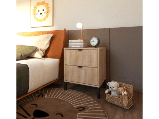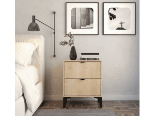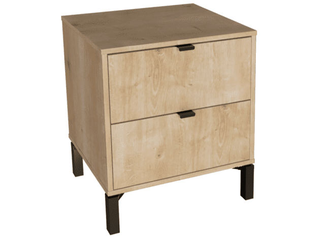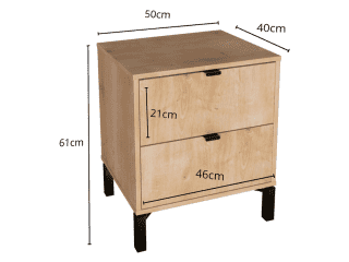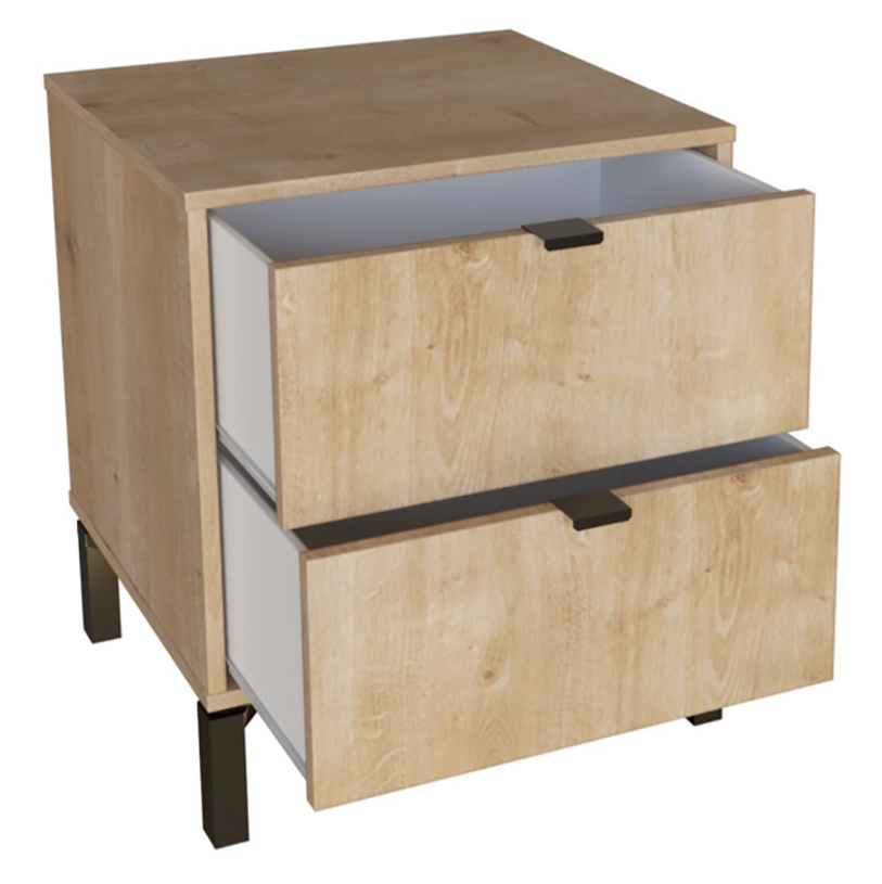 Esta mesa de luz tiene todo lo que necesitás: diseño moderno, altura ideal para camas más altas y cajones amplios para guardar todo eso que querés bien a mano y bien guardado a la vez. Fabricada en MDP con contrachapado melamínico, rieles telescópicos para un deslizamiento suave, patas en madera y tiradores metálicos, ambos detalles en color negro, aportan carácter y estilo con un toque de sofisticación. Una pieza funcional, simple y con mucha onda que eleva el estilo de tu dormitorio.