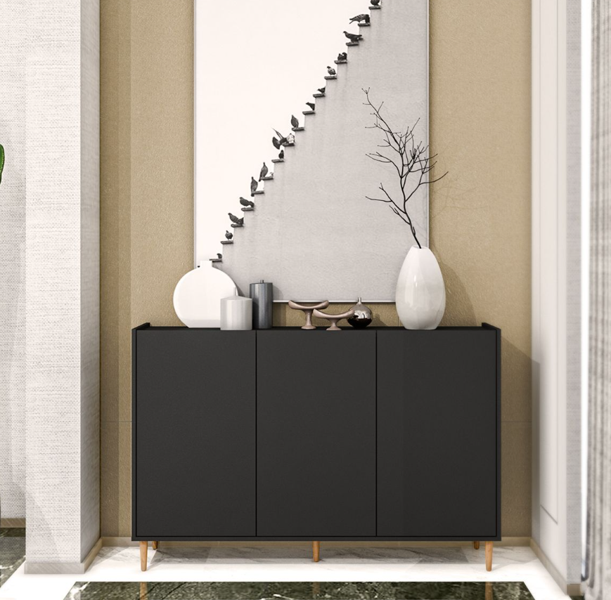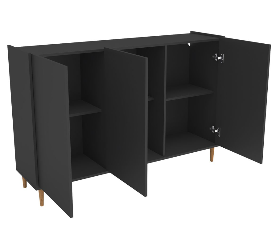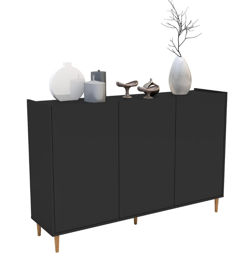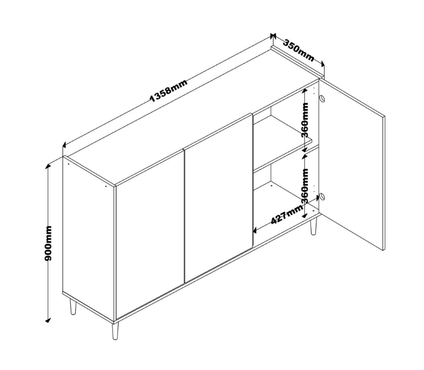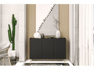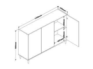 Aparador Argos, es una pieza funcional de estilo minimalista. Perfecta para guardado de vajilla, mantelería o cualquier cosa que quieras tener a mano pero no tan visible en la sala o comedor. Con 3 puertas, estante intermedio en cada una de ellas y gran capacidad de guardado.