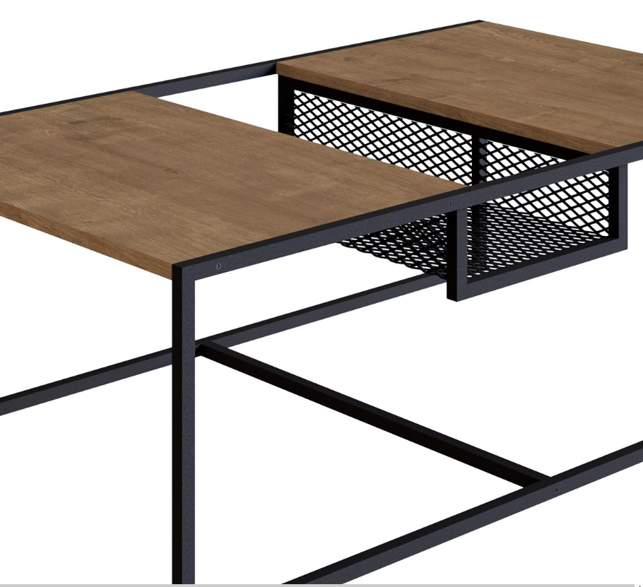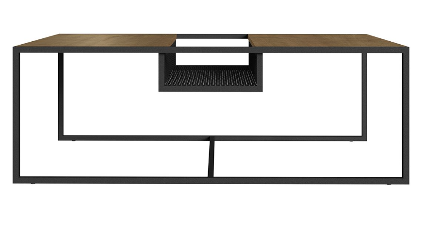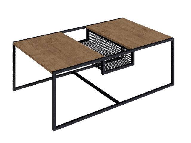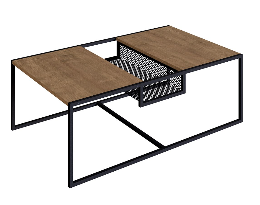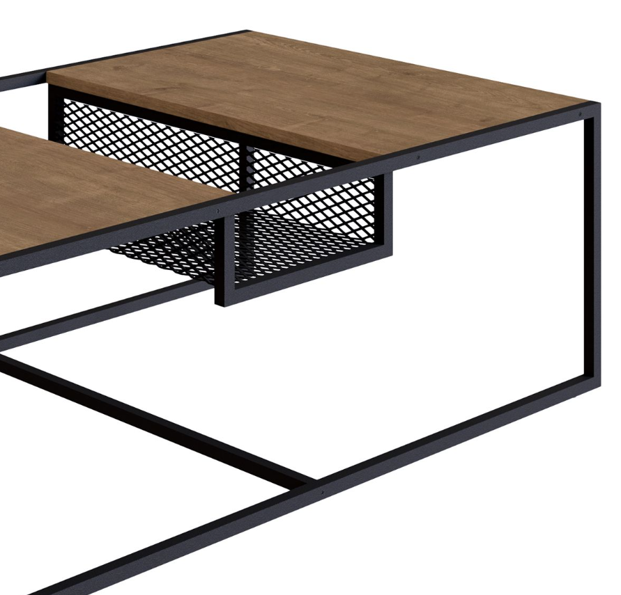 La mesa central Metro combina diseño contemporáneo y funcionalidad. Estilo industrial. Cuenta con un detalle central de rejilla metálica en desnivel, ideal para organizar objetos de uso diario como revistas, controles remotos o libros, manteniendo la superficie despejada y tu espacio siempre en orden. Perfecta para complementar salas modernas con un toque de practicidad.