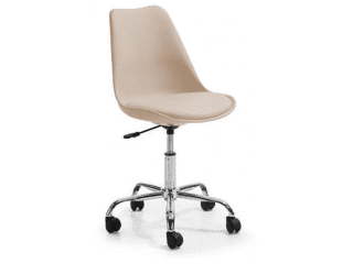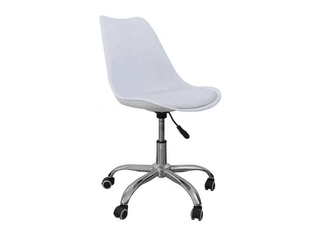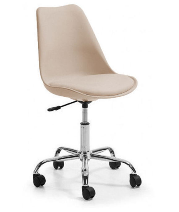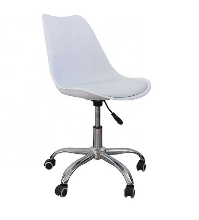 Dale un toque original a tu escritorio u oficina con esta silla inspirada en la silla Eames, adaptada para su uso como silla de escritorio con patas metálicas y ruedas con asiento acolchonado para mayor comodidad.