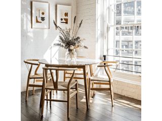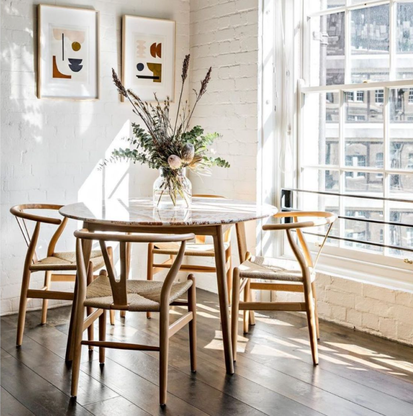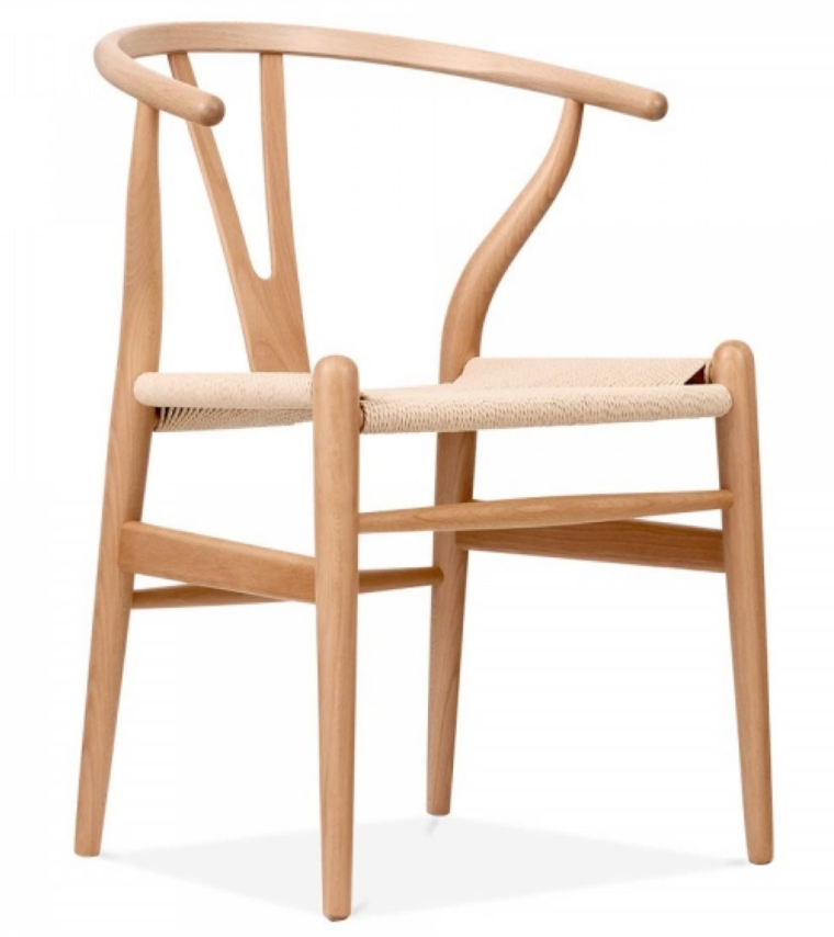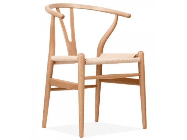 Inspirada en el clásico modelo del danés Hans J. Wegner, la silla Wishbone es un ícono del diseño nórdico. Conjuga artesanía con producción en serie, estética, ergonomía y funcionalidad. Estructura en madera de haya y asiento tejido en fibra natural.