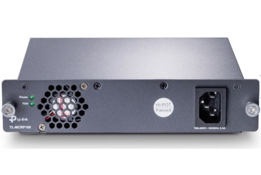 El Módulo de Fuente de Alimentación Redundante de TP-LINK TL-MCRP100 es un módulo de fuente de alimentación de salida DC y entrada AC. Puede convertir 100-240V a 50/60Hz de voltaje de entrada en 9.5V DC de salida con una tasa de potencia eléctrica de 102W. El módulo de fuente de alimentación soporta protección frente a sobre-corriente/cortocircuito/sobre-voltaje de salida. El TL-MCRP100 se puede aplicar a un Chasis de Montaje en Rack de 14 ranuras TC-MC1400.