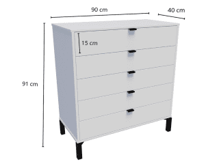 Sus 5 cajones amplios y profundos ofrecen un gran espacio de guardado, ideales para organizar ropa, accesorios o lo que prefieras. Además, los rieles telescópicos aseguran un deslizamiento suave, haciendo que usarla sea siempre un placer.