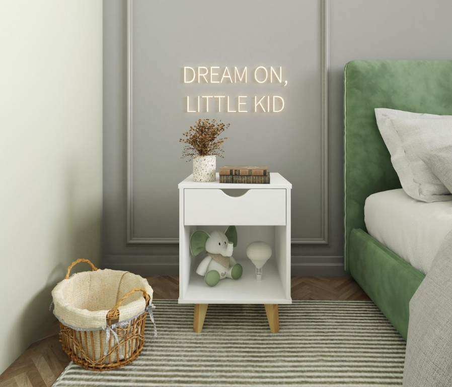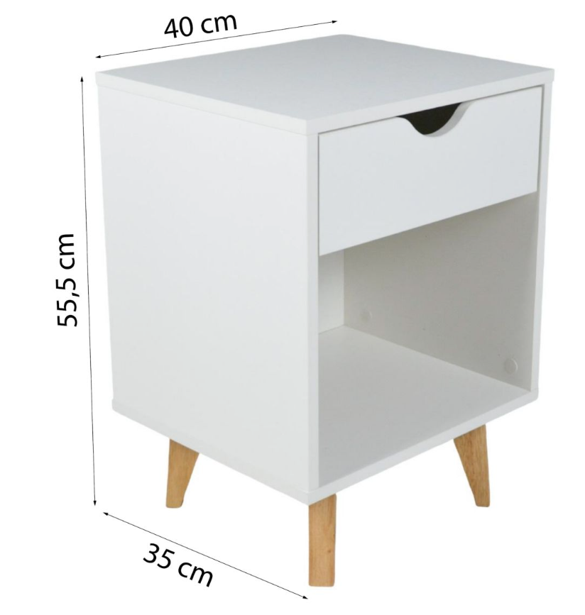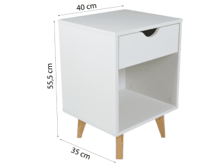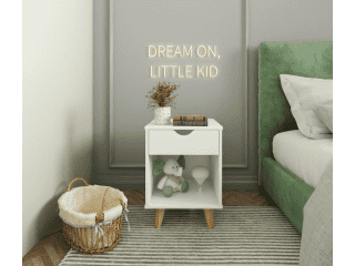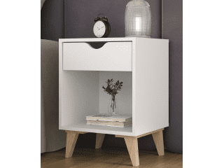 Dimensiones de base compactas, un cajón y estante librero es todo lo que necesitas al lado de la cama. Combinala con la Mesa de Luz Silah si prefieres más cajones para guradado fuera de la vista!