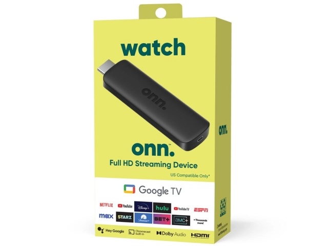 ONN Dispositivo de transmisión Google TV Full HD con control remoto por voz Asistente de Google y cable HDMI.