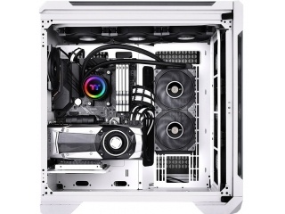 La TOUGHLIQUID 240 ARGB Sync AIO es una refrigeración líquida todo en uno equipada con ventiladores TOUGHFAN 12, con una controladora incorporada, y una tapa giratoria con 6 LEDs.